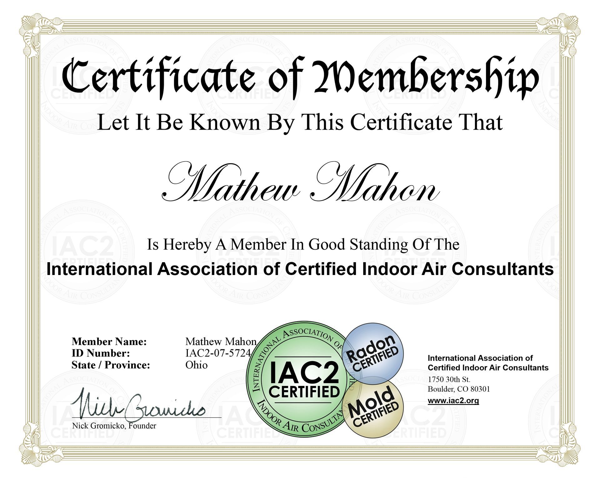 Mahon Services Certifications